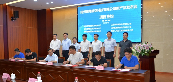 7月10号上午,翊翔航空鹏眸系列长航时无人机产品发布会在高邮市中汽中心产业园隆重举行。市领导杨文喜、邱加永、阚道远等一行莅临参加了本次发布会的活动。